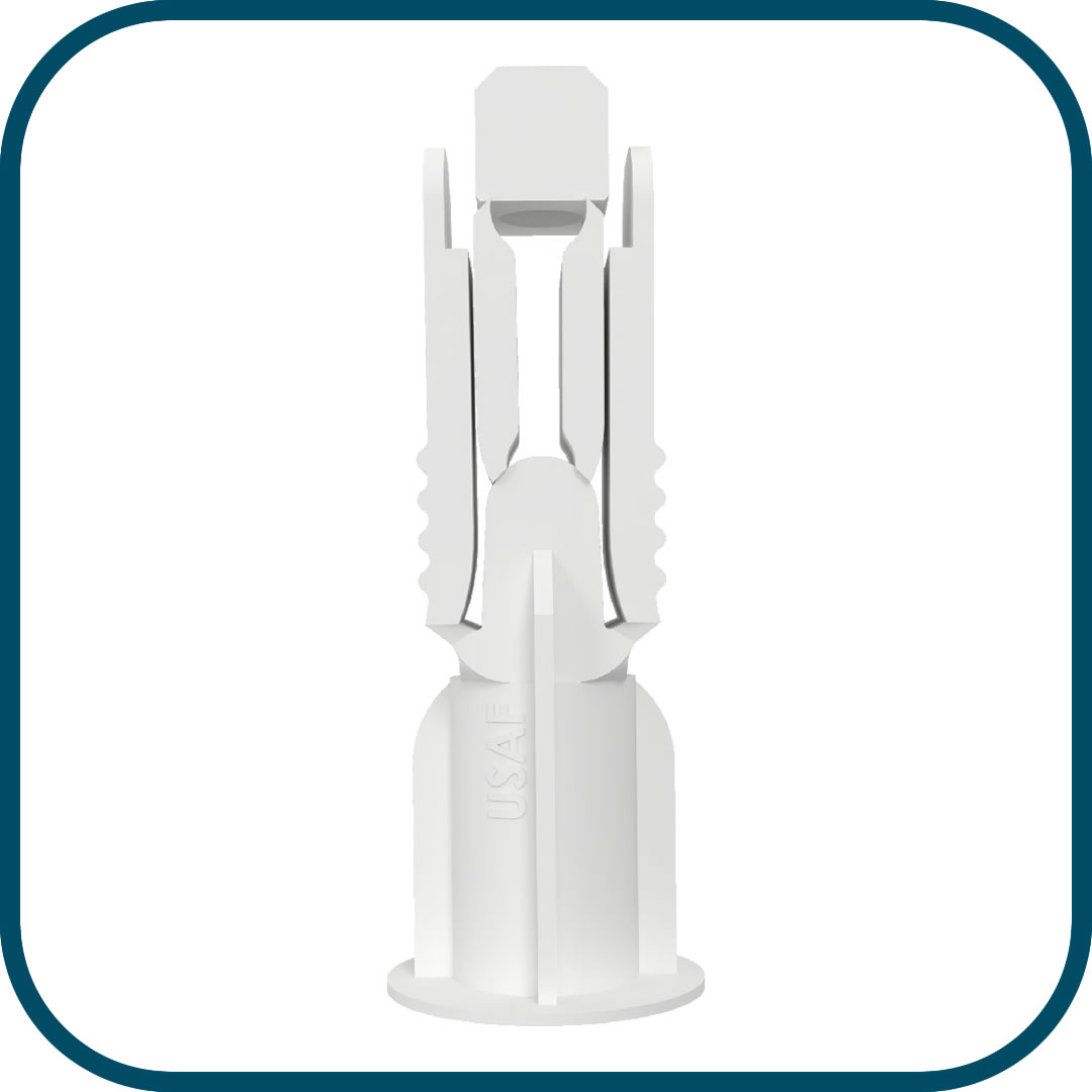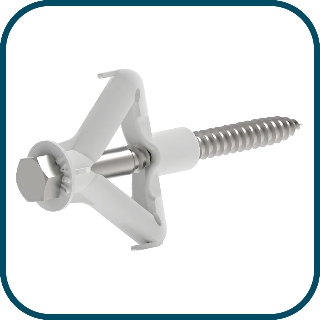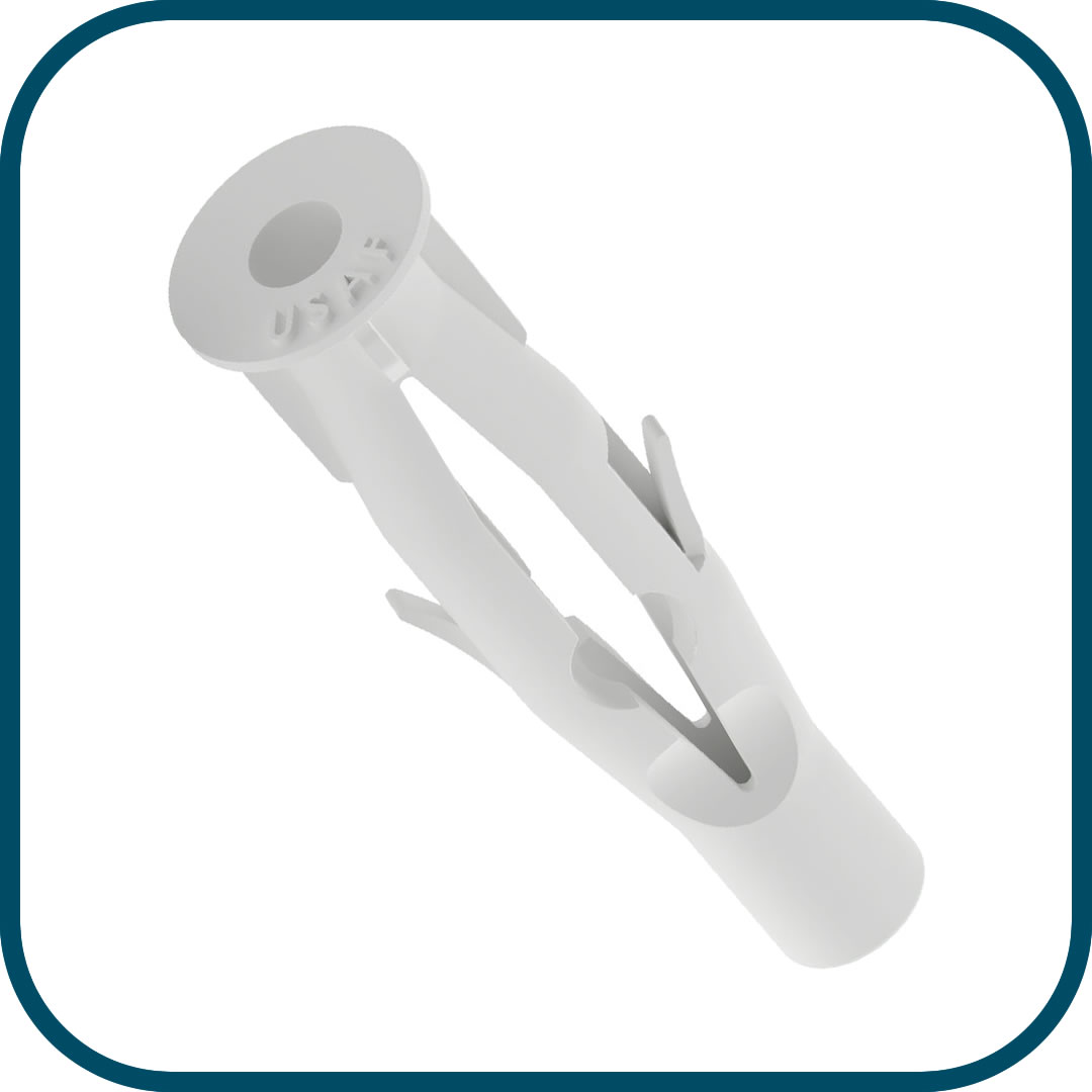 Abas laterais que fixam na parede e impedem que a bucha gire ao dar o torque no parafuso